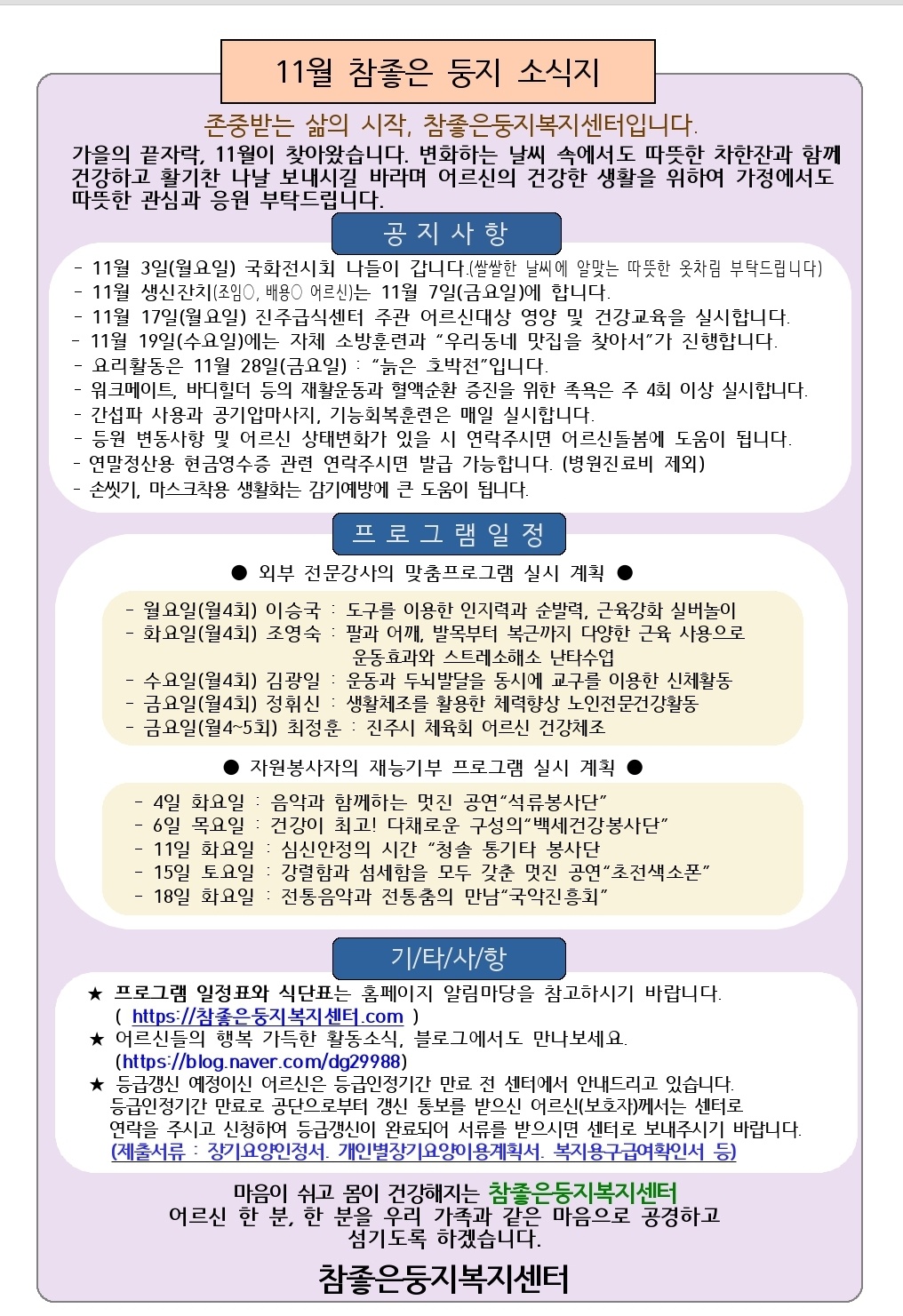 11월 참좋은둥지소식지